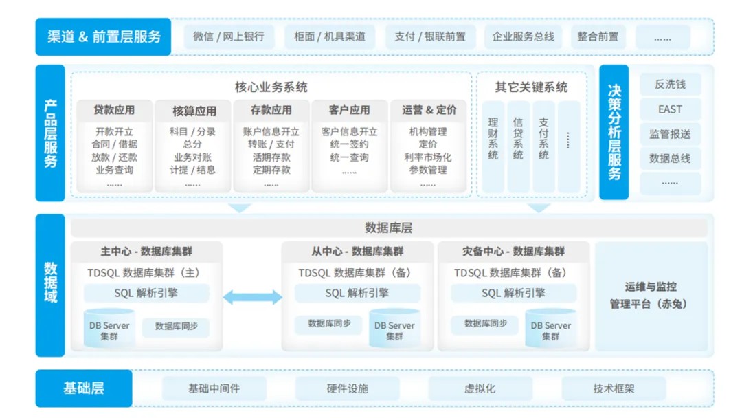 依托PG电子信息Sm@rtEnsemble核心系统和腾讯云TDSQL分布式数据库,新核心系统整体建设方案分为三个阶段进行实施,通过核心系统的分阶段升级,逐步实现银行IT系统架构的不断优化。