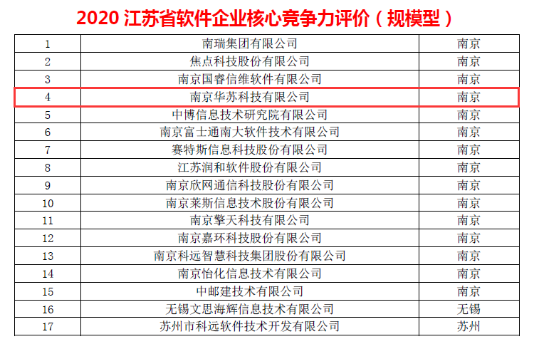 评选涉及江苏省范围内近1000家软件企业,华苏科技凭借自身过硬的综合实力及在软件行业不断突破的优异表现,获评“2020江苏省软件核心竞争力企业(规模型)”,获得行业的高度认可。