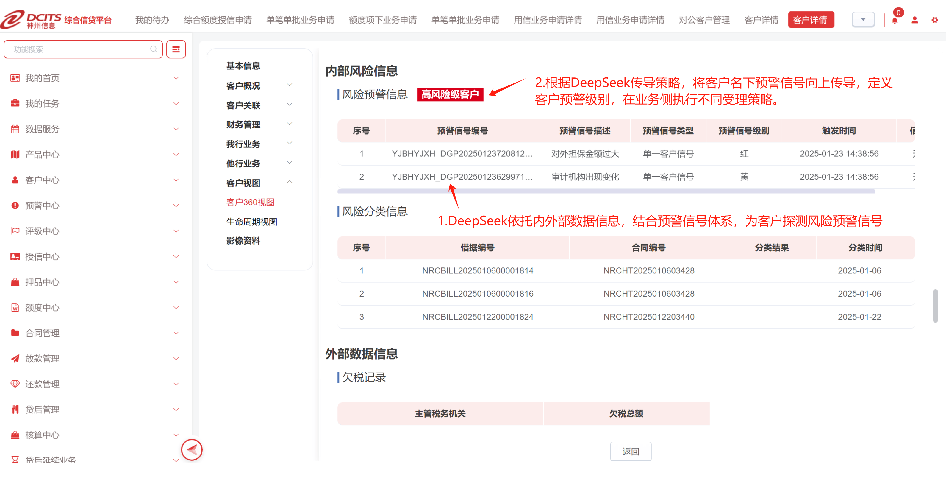 分级处置:自动生成客户风险等级,如“高风险-暂停新增授信”、“中风险-追加抵押物”,推送至客户经理移动终端。